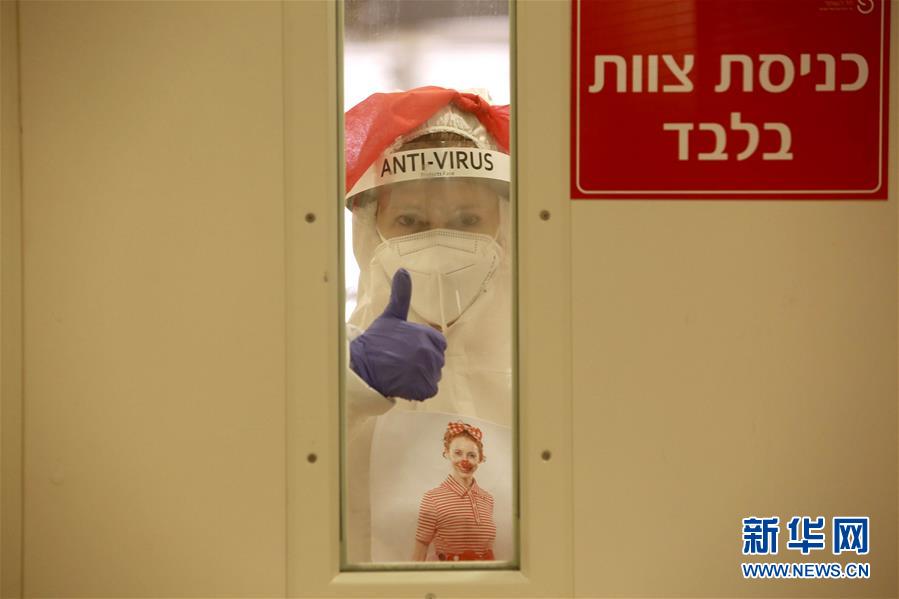 10月20日,在以色列中部城市拉马特甘一家医疗中心,一名“医疗小丑”举起大拇指。 新冠疫情期间,以色列医院里有这样一群特殊的人们,他们一身滑稽装扮,佩戴涂鸦口罩,动作夸张,希望以此帮助患者在欢笑中配合治疗,并暂时忘却孤独和痛苦。这些人被称为“医疗小丑”或是“梦想医生”,他们在严格的卫生防疫措施下坚持工作。 新华社发(吉尔·科恩·马根摄)
