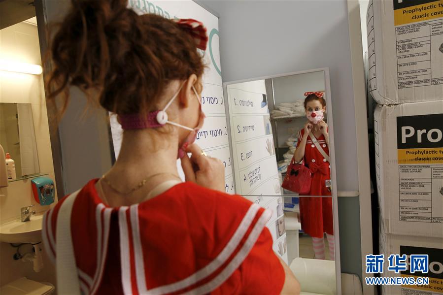 10月20日,在以色列中部城市拉马特甘一家医疗中心,一名“医疗小丑”穿戴防护装备。 新冠疫情期间,以色列医院里有这样一群特殊的人们,他们一身滑稽装扮,佩戴涂鸦口罩,动作夸张,希望以此帮助患者在欢笑中配合治疗,并暂时忘却孤独和痛苦。这些人被称为“医疗小丑”或是“梦想医生”,他们在严格的卫生防疫措施下坚持工作。 新华社发(吉尔·科恩·马根摄)