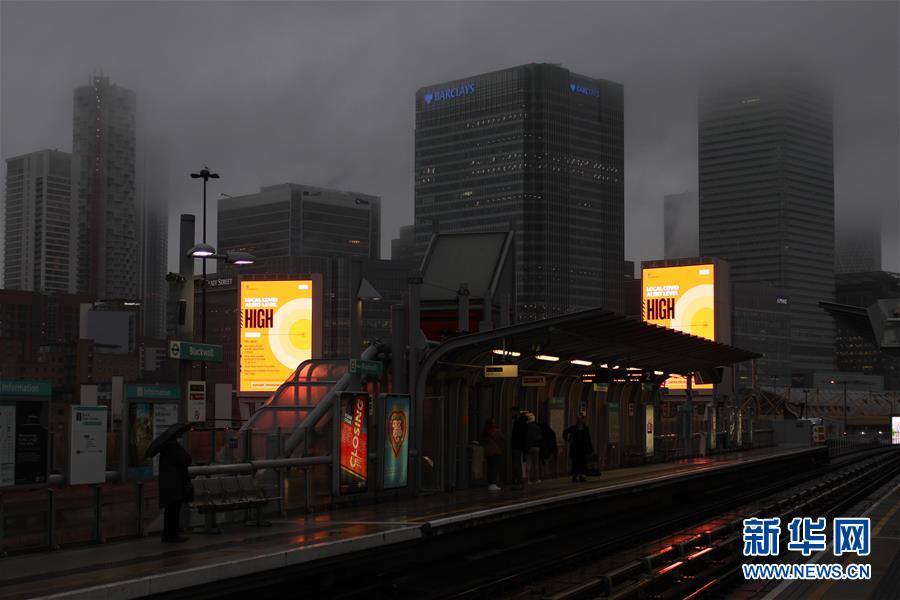 这是10月21日在英国伦敦金丝雀码头附近的一个车站拍摄的当地新冠警戒级别为“高”的提示牌。 新华社发(蒂姆·爱尔兰摄)