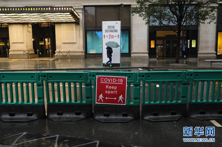 10月21日,一名行人打伞走在英国伦敦市中心的牛津街。新华社发(蒂姆·爱尔兰摄)