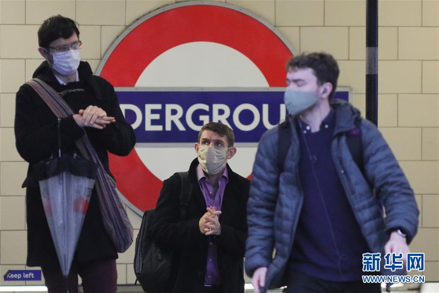 10月21日,戴口罩的乘客在离开英国伦敦一个地铁站时进行手部消毒。新华社发(蒂姆·爱尔兰摄)