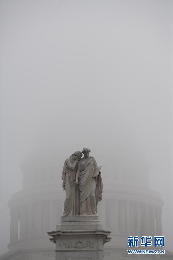 10月22日,在美国首都华盛顿,国会大厦笼罩在浓雾中。 当日,华盛顿出现浓雾天气,能见度较低。 新华社记者 刘杰 摄
