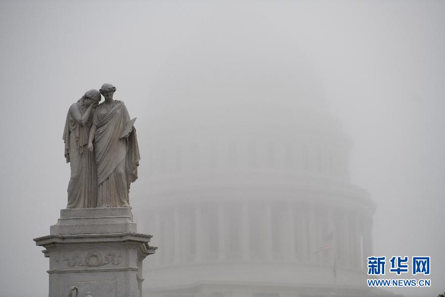 10月22日,在美国首都华盛顿,国会大厦笼罩在浓雾中。 当日,华盛顿出现浓雾天气,能见度较低。 新华社记者 刘杰 摄