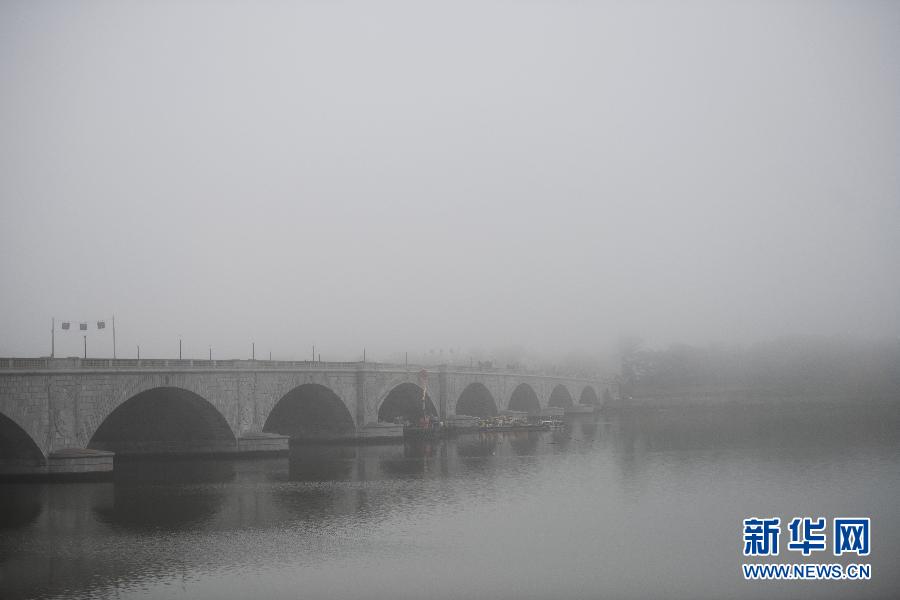 这是在美国华盛顿拍摄的浓雾中的阿灵顿纪念大桥(10月22日摄)。 当日,华盛顿出现浓雾天气,能见度较低。 新华社记者 刘杰 摄