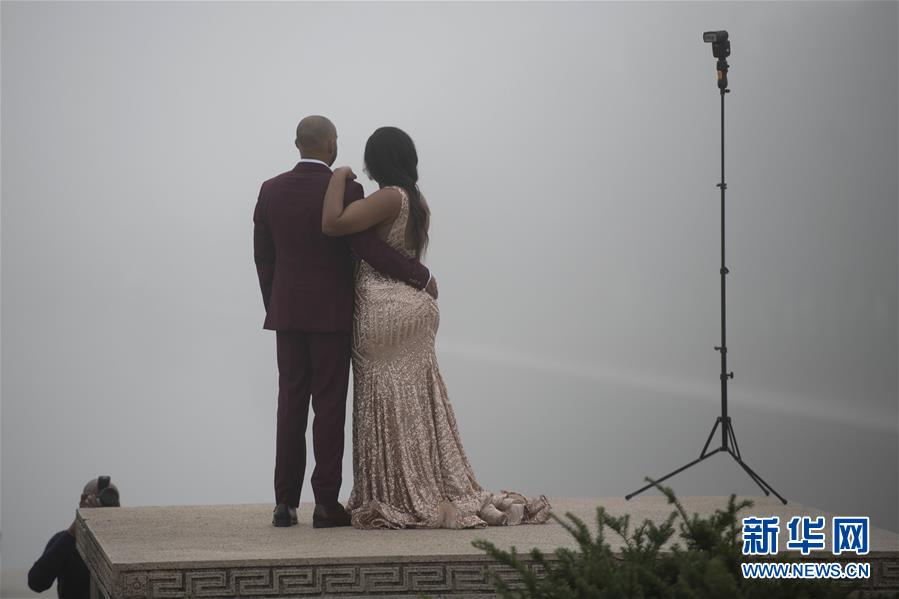 10月22日,在美国首都华盛顿,人们在浓雾中拍照。 当日,华盛顿出现浓雾天气,能见度较低。 新华社记者 刘杰 摄