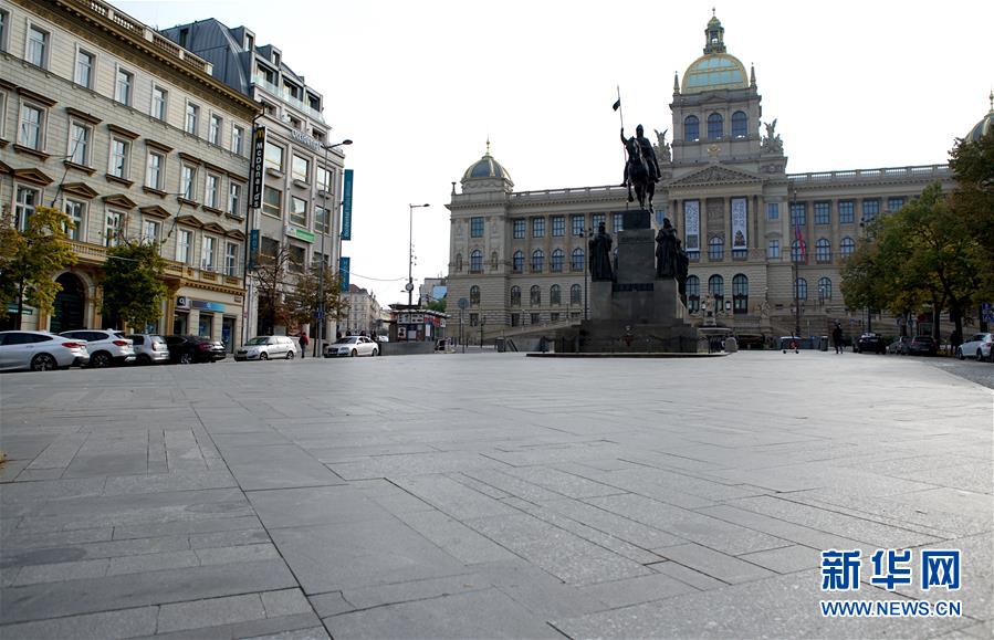 10月22日,捷克首都布拉格的瓦茨拉夫广场空空荡荡。 由于近期疫情显著反弹,捷克政府宣布从22日起大部分商铺歇业并限制居民非必要出行。 新华社发(达娜·科什奈洛娃摄)