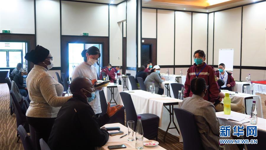 10月2日,在莱索托马塞卢,中国医疗专家组成员对莱索托医务工作者进行防疫相关培训。 应莱索托政府邀请,中国政府抗疫医疗专家组一行10人于9月27日至10月7日在莱索托开展抗击新冠疫情援助工作。专家组先后到莱卫生部、新冠定点医院、国家核酸检测实验室及世卫组织驻莱代表处交流分享抗疫经验,对社区防控人员及医务人员开展培训,并为中国驻莱使馆、中资机构及华侨华人举办疫情防控讲座。 新华社发(中国驻莱索托大使馆供图)