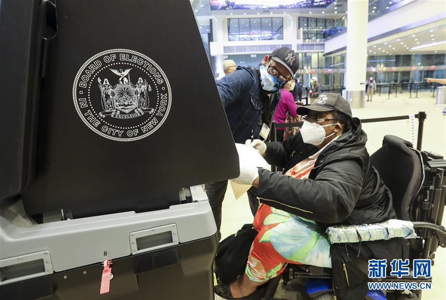 10月24日,选民在美国纽约林肯中心的投票点提前投票。 纽约州2020美国大选提前投票当日启动。美国大选投票日是11月3日,但多地已经开始提前投票。 新华社记者 王迎 摄