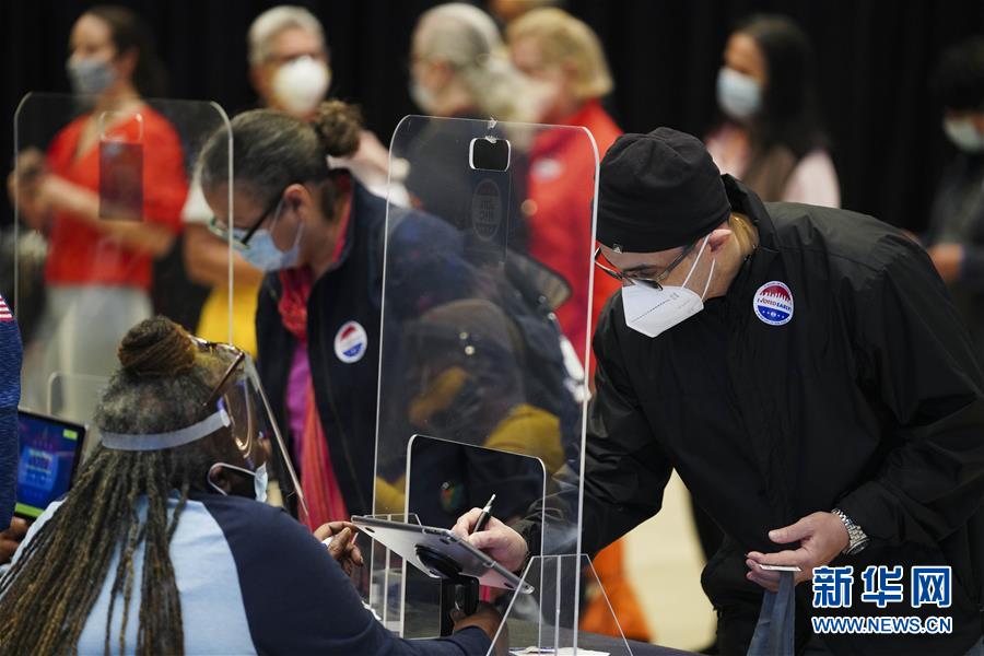 10月24日,选民在美国纽约麦迪逊花园广场投票点登记提前投票。 纽约州2020美国大选提前投票当日启动。美国大选投票日是11月3日,但多地已经开始提前投票。 新华社记者 王迎 摄