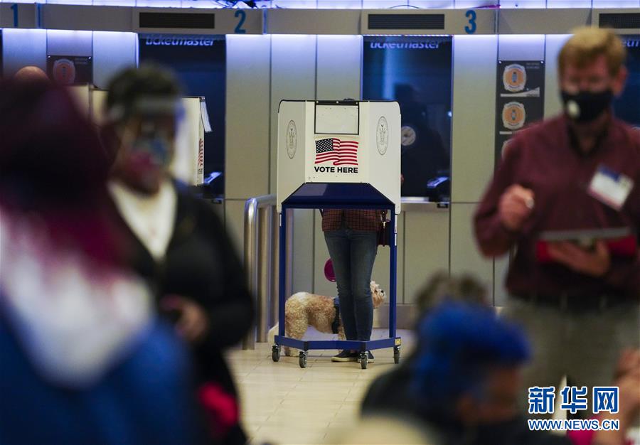10月24日,选民在美国纽约麦迪逊花园广场投票点提前投票。 纽约州2020美国大选提前投票当日启动。美国大选投票日是11月3日,但多地已经开始提前投票。 新华社记者 王迎 摄