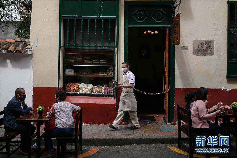 10月24日,人们在哥伦比亚首都波哥大一家餐厅的户外区域用餐。 哥伦比亚卫生和社会保障部24日公布的数据显示,该国累计新冠确诊病例1007711例,累计死亡病例3万例。 新华社发(约翰·帕斯摄)