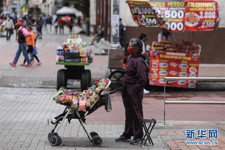 10月24日,戴着口罩的商贩在哥伦比亚首都波哥大等待顾客。 哥伦比亚卫生和社会保障部24日公布的数据显示,该国累计新冠确诊病例1007711例,累计死亡病例3万例。 新华社发(约翰·帕斯摄)