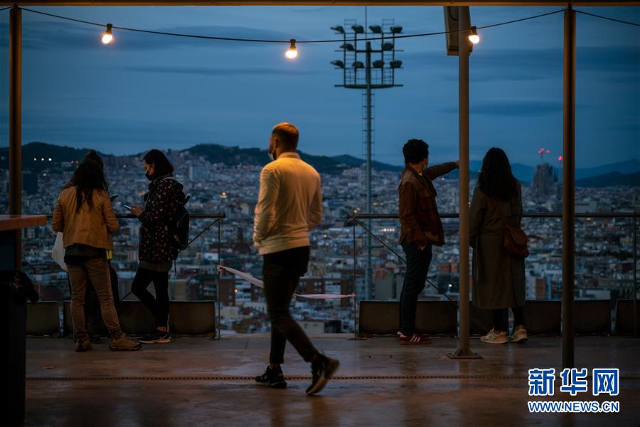 10月25日傍晚,人们在西班牙巴塞罗那欣赏夜景。 西班牙首相桑切斯25日宣布,该国再次进入国家紧急状态,以遏制新冠疫情蔓延。桑切斯在首相府举行的视频新闻发布会上说,西班牙当天举行内阁特别会议,决定自25日下午开始在全国实施新一轮国家紧急状态,以期将全国每10万人中确诊病例数降至25例以下。 新华社发(胡安·戈萨摄)