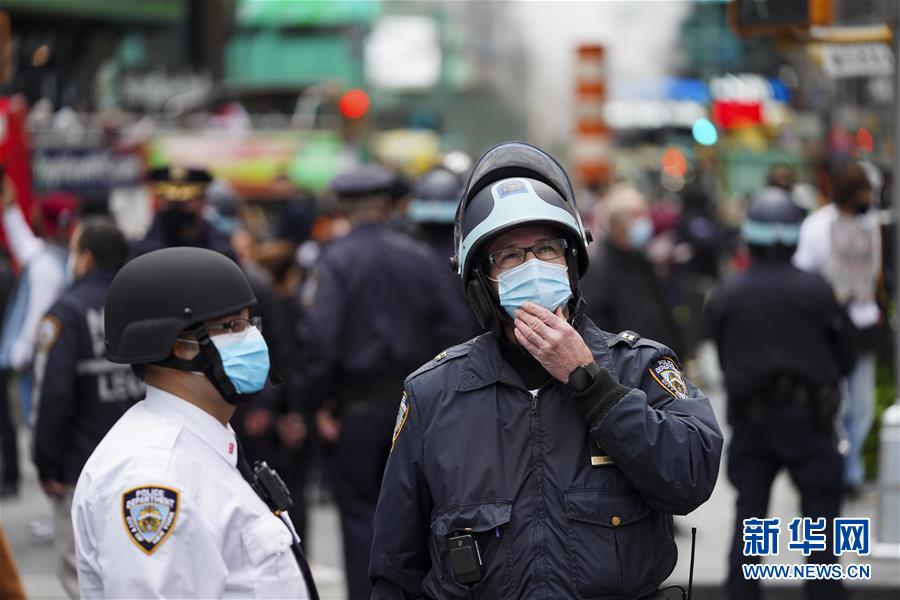 10月25日,警察在美国纽约时报广场执勤。 美国疾病控制和预防中心网站25日的数据显示,全美23日和24日报告新增新冠确诊病例分别为82929例和83851例,连续刷新疫情暴发以来单日新增最高纪录。 新华社记者 王迎 摄