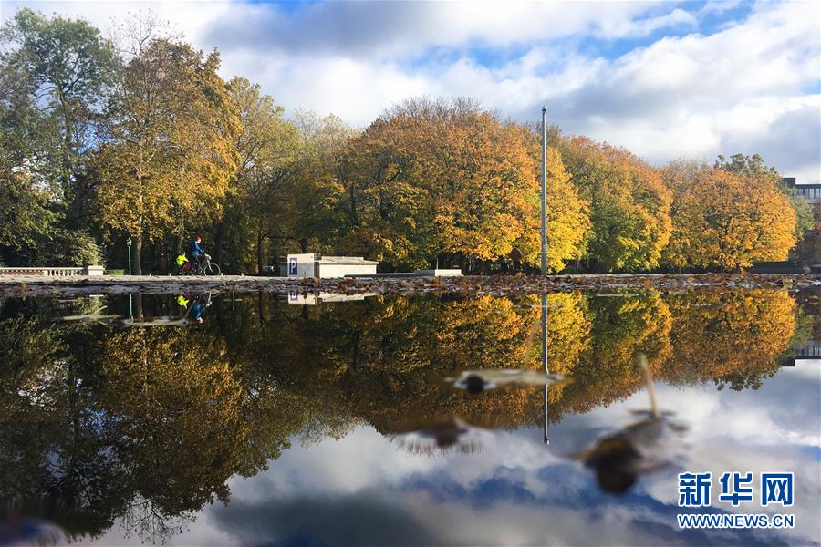 10月26日,人们在比利时布鲁塞尔的五十周年纪念公园骑行。 布鲁塞尔秋意正浓,景色怡人。 新华社记者郑焕松摄