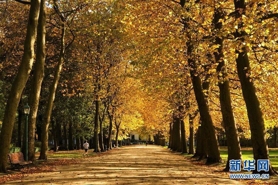 10月26日,一名男子在比利时布鲁塞尔的五十周年纪念公园跑步。 布鲁塞尔秋意正浓,景色怡人。 新华社记者郑焕松摄