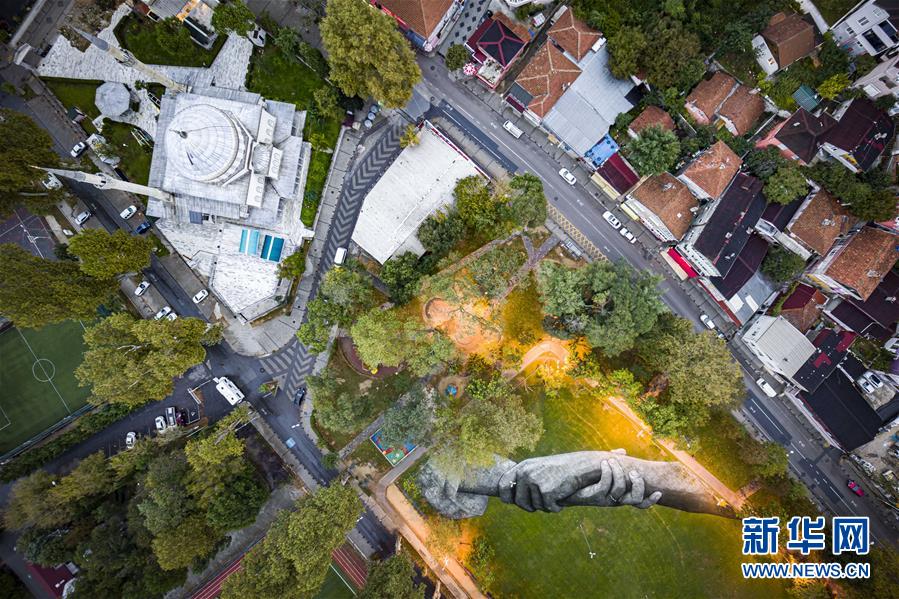 这是10月18日在土耳其伊斯坦布尔航拍的法国艺术家纪尧姆·勒格罗绘制的巨幅露天绘画作品。(无人机拍摄) 新华社发