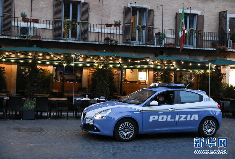 10月26日,一辆警车在意大利首都罗马纳沃纳广场上巡逻。 意大利政府采取一系列新措施,进一步加强新冠疫情防控。自10月26日零时起至11月24日,意大利禁止酒吧、咖啡馆、餐厅、冰淇淋店等每天18时后继续提供堂食。 新华社记者 程婷婷 摄
