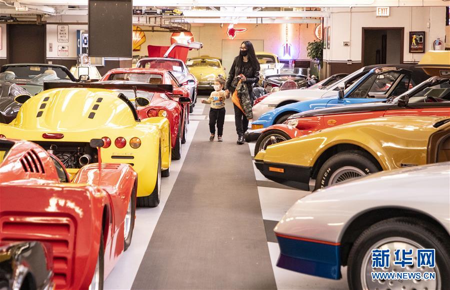 新华社照片,芝加哥,2020年10月26日 (国际)(5)走进美国芝加哥克莱尔蒙特汽车博物馆 10月25日,在美国芝加哥,一名女子带着孩子在克莱尔蒙特汽车博物馆参观。 克莱尔蒙特汽车博物馆是一家私人博物馆,收藏陈列有300多辆不同年代的经典汽车,为参观者呈现出汽车产业的发展史。 新华社发(乔尔·莱纳摄)
