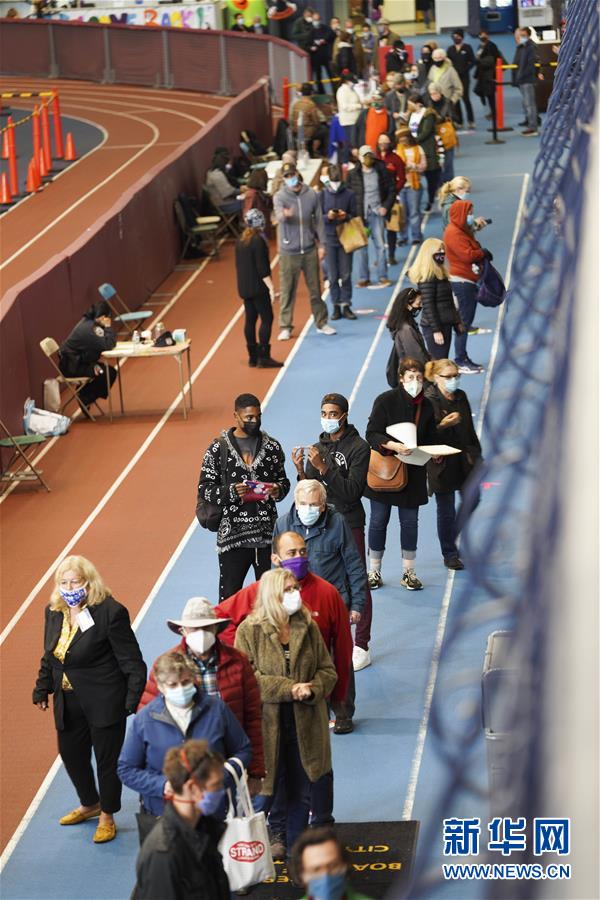 10月27日,选民在美国纽约的一处投票点排队参加提前投票。新华社记者 王迎 摄