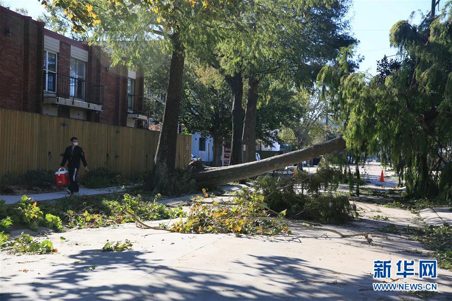 10月29日,在美国路易斯安那州新奥尔良,一名男子从飓风“泽塔”刮倒的大树旁走过。 据美国媒体29日报道,飓风“泽塔”28日在美国南部登陆,造成至少6人死亡,路易斯安那州等地大面积停电。 新华社发(魏兰摄)