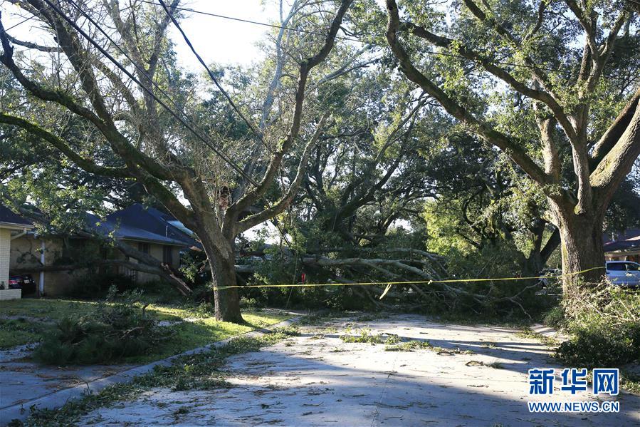 10月29日,在美国路易斯安那州新奥尔良,一条街道被飓风“泽塔”刮倒的树木阻断。 据美国媒体29日报道,飓风“泽塔”28日在美国南部登陆,造成至少6人死亡,路易斯安那州等地大面积停电。 新华社发(魏兰摄)