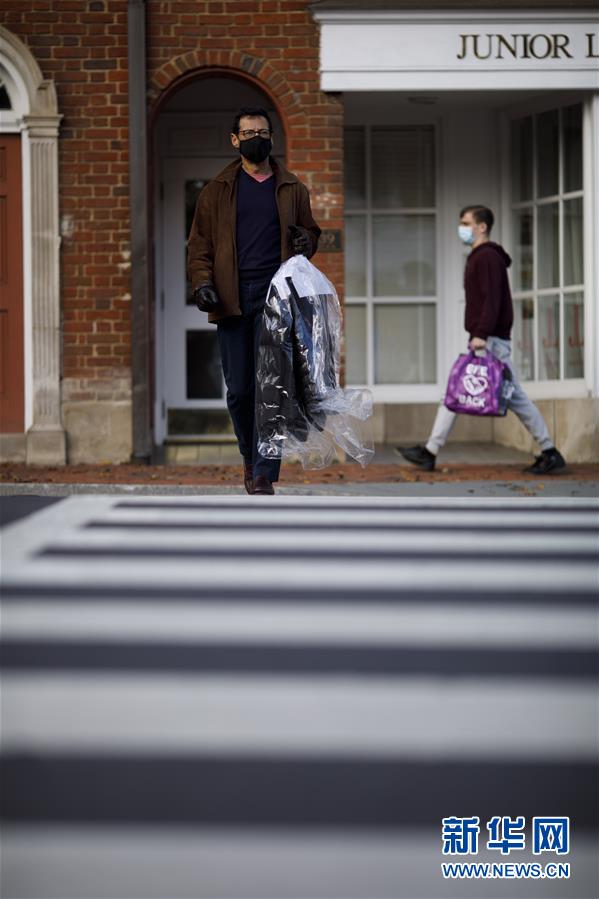 10月30日,在美国首都华盛顿,人们戴着口罩出行。 美国约翰斯·霍普金斯大学30日发布的新冠疫情最新统计数据显示,美国累计确诊病例超过900万例。 新华社发(沈霆摄)