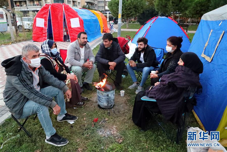 10月31日,在土耳其伊兹密尔省,当地居民在救援现场附近等待救援进展消息。 跨土耳其西部海岸的爱琴海海域10月30日发生6.6级地震。截至31日上午,地震已致土耳其25人死亡。 新华社发(艾登·切廷卡亚摄)