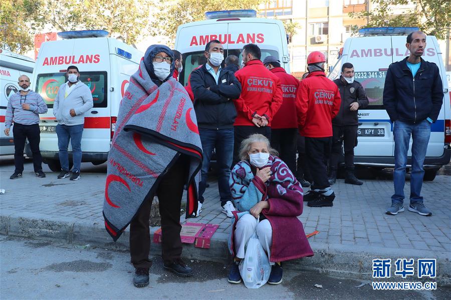 10月31日,在土耳其伊兹密尔省,当地居民在救援现场附近等候救援进展的消息。 跨土耳其西部海岸的爱琴海海域10月30日发生6.6级地震。截至31日上午,地震已致土耳其25人死亡。 新华社发(艾登·切廷卡亚摄)