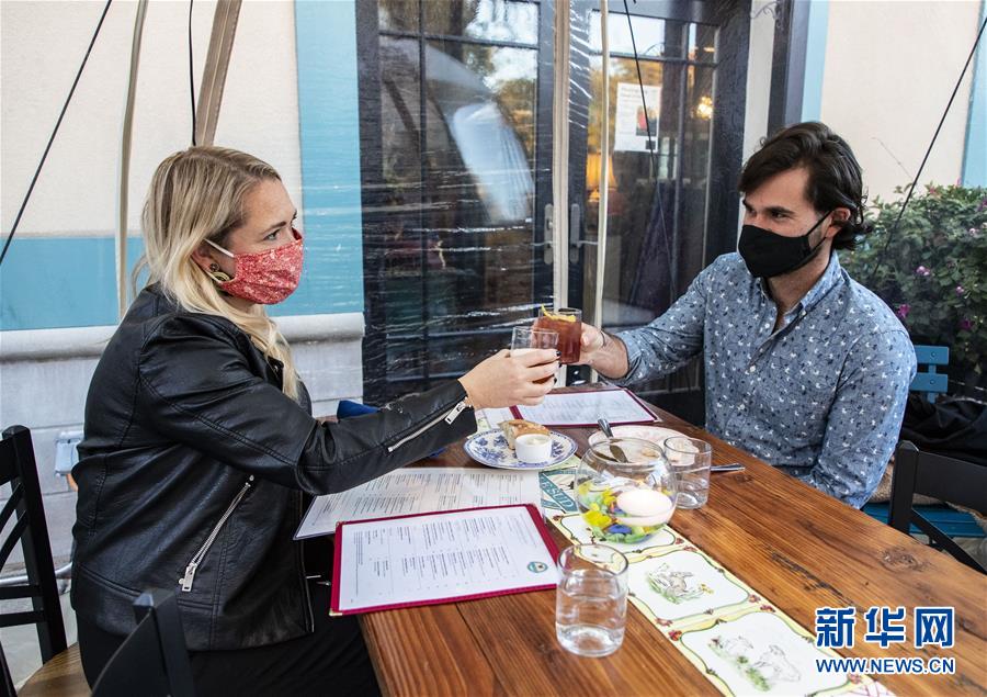 10月30日,在美国伊利诺伊州芝加哥,顾客在餐馆室外帐篷中碰杯。 当日,伊利诺伊州新增新冠确诊病例6943例。从当日起,伊利诺伊州再次禁止芝加哥的餐馆、酒吧等提供室内餐饮服务,室外餐饮必须在晚11时停止。 新华社发(乔尔·莱纳摄)
