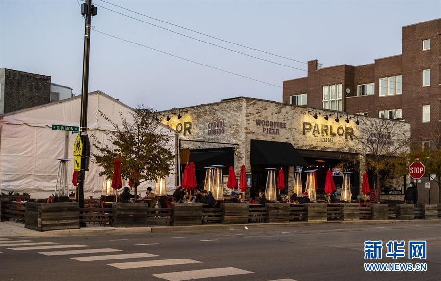 10月30日,在美国伊利诺伊州芝加哥,顾客在餐馆室外区用餐。 当日,伊利诺伊州新增新冠确诊病例6943例。从当日起,伊利诺伊州再次禁止芝加哥的餐馆、酒吧等提供室内餐饮服务,室外餐饮必须在晚11时停止。 新华社发(乔尔·莱纳摄)