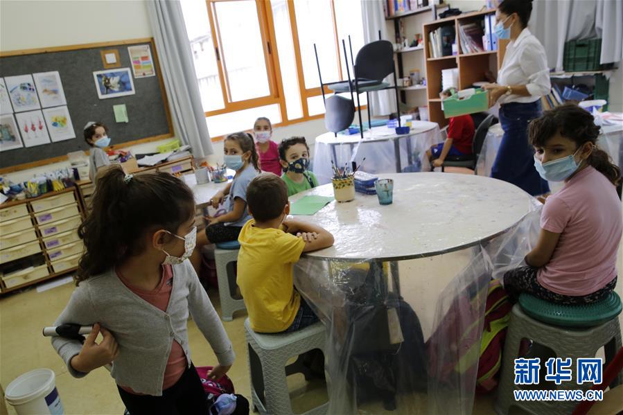 11月1日,在以色列中部城市莫迪因,小学生戴着口罩上学。新华社发(吉尔·科恩·马根摄)