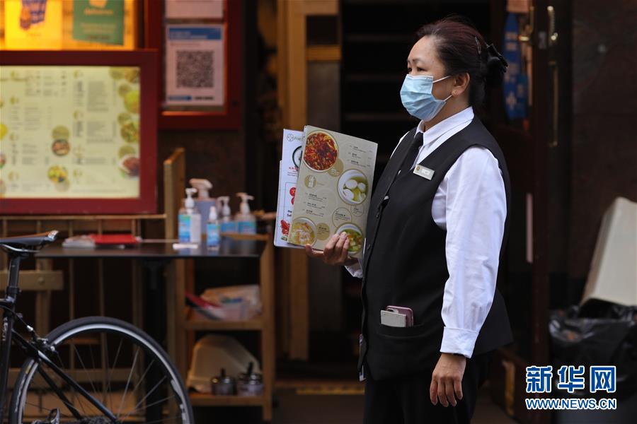 11月1日,一名餐厅工作人员在英国伦敦中国城等待顾客。新华社发(蒂姆·爱尔兰摄)