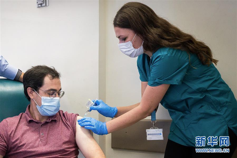 11月1日,在位于耶路撒冷的哈达萨医院,一名参加新冠疫苗临床试验的志愿者接受疫苗注射。