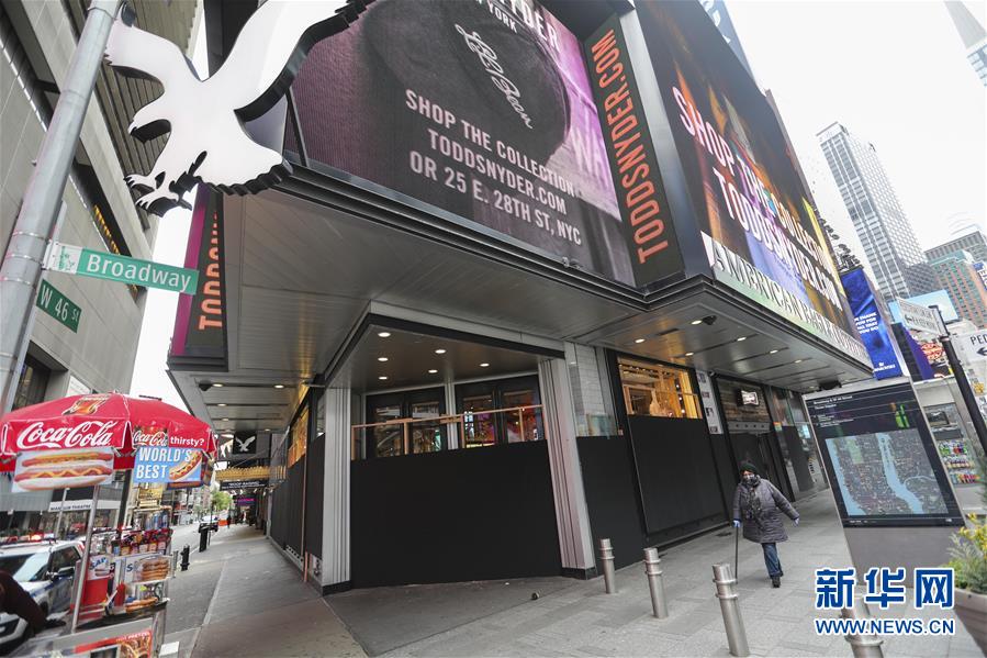 11月1日,在美国纽约时报广场,行人从一家安装了防护板的商店旁走过。 由于担心发生骚乱带来损失,纽约不少商店和写字楼开始加强防护和安保。 新华社记者王迎摄
