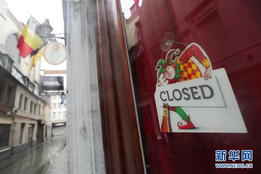 11月2日,比利时布鲁塞尔的一家酒吧门上挂着“关闭”标牌。 从11月2日零时起,比利时全国开始实施新一轮更严厉的新冠防控措施,包括所有“非必需品”商店关门、居家办公由强烈建议升级为强制、一个家庭能接待的访客人数由4人减至1人、学校的秋假延长至11月15日等。新措施将持续至12月13日。 新华社记者 郑焕松 摄
