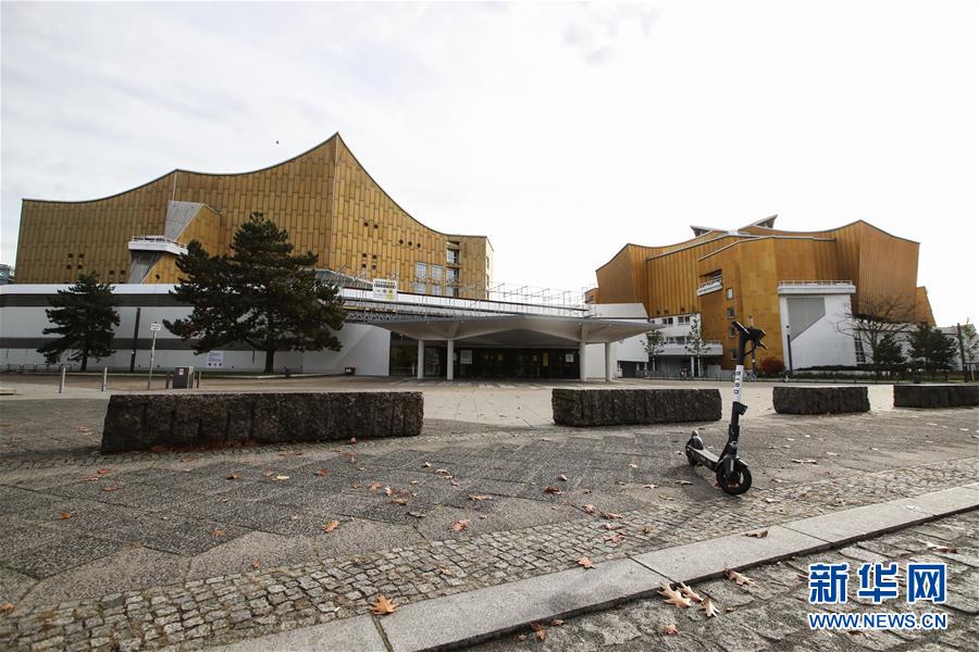 11月2日,在德国首都柏林,一辆电动滑板车停放在因疫情关闭的柏林爱乐音乐厅前。 德国联邦和各州政府10月28日达成协定,从11月2日起再次执行较为严厉的全国限制措施。德国各地餐馆、酒吧、影剧院、游乐场、健身房、美容院等餐饮和文体设施将关闭一个月。民众被要求尽可能减少与家庭成员以外人员接触,公共场所聚集不得超过2户10人。民众还被建议放弃不必要的旅行和探访等。 新华社记者 单宇琦 摄