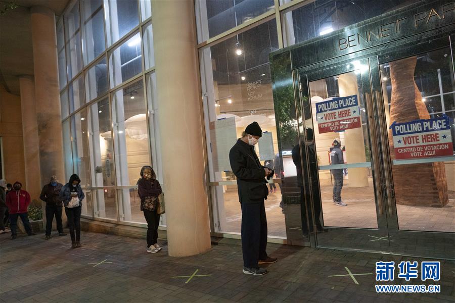11月3日,选民在美国弗吉尼亚州阿灵顿一处投票站外排队等待投票。 2020年美国大选选举日投票3日开始,全美预计将有数千万名选民前往投票站,投票选出下一任美国总统、数百名国会议员及部分地方官员。 新华社记者 刘杰 摄