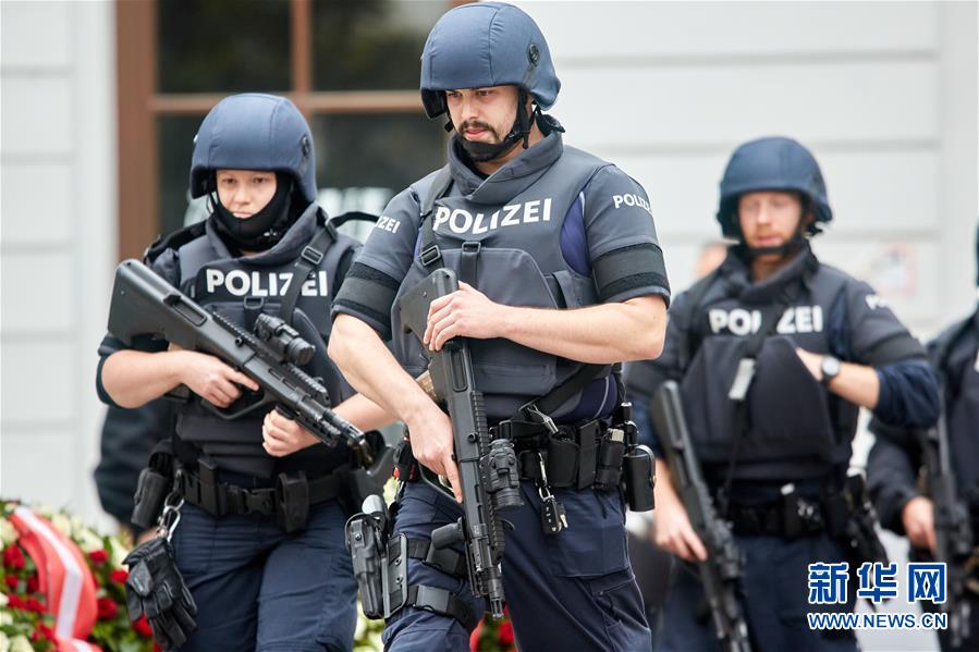 11月3日,警察在奥地利维也纳街头警戒。 奥地利首都维也纳2日发生枪击事件,奥地利政府宣布11月3日至5日为全国哀悼日。 新华社发(乔治斯·施耐德 摄)