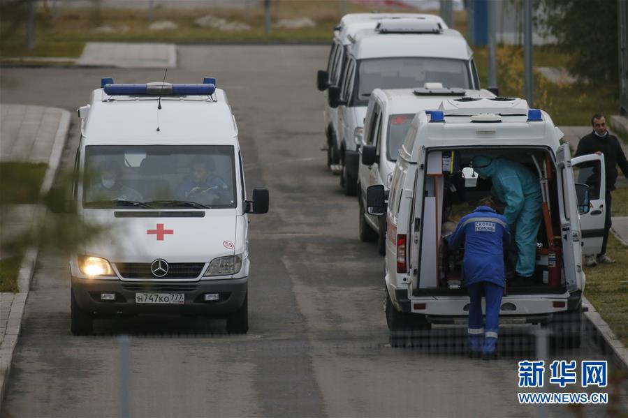 11月4日,救护车停在俄罗斯首都莫斯科市郊的科穆纳尔卡一家医院。 据俄罗斯防疫指挥部4日消息,过去24小时俄新增新冠确诊病例19768例,创历史新高,累计1693454例;新增死亡病例389例也创新高,累计死亡29217例。 新华社发(亚历山大摄)