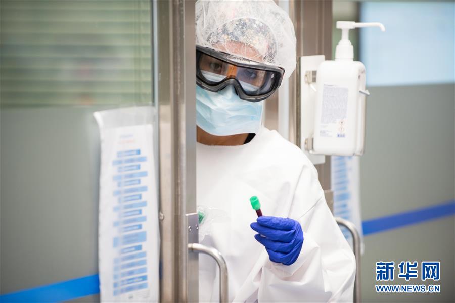 11月5日,医务人员在西班牙巴塞罗那一所医院的呼吸科重症监护病房手持血样。 西班牙卫生部5日发布的统计数据显示,该国累计新冠确诊病例1306316例。 新华社发(弗朗西斯科·阿维亚摄)