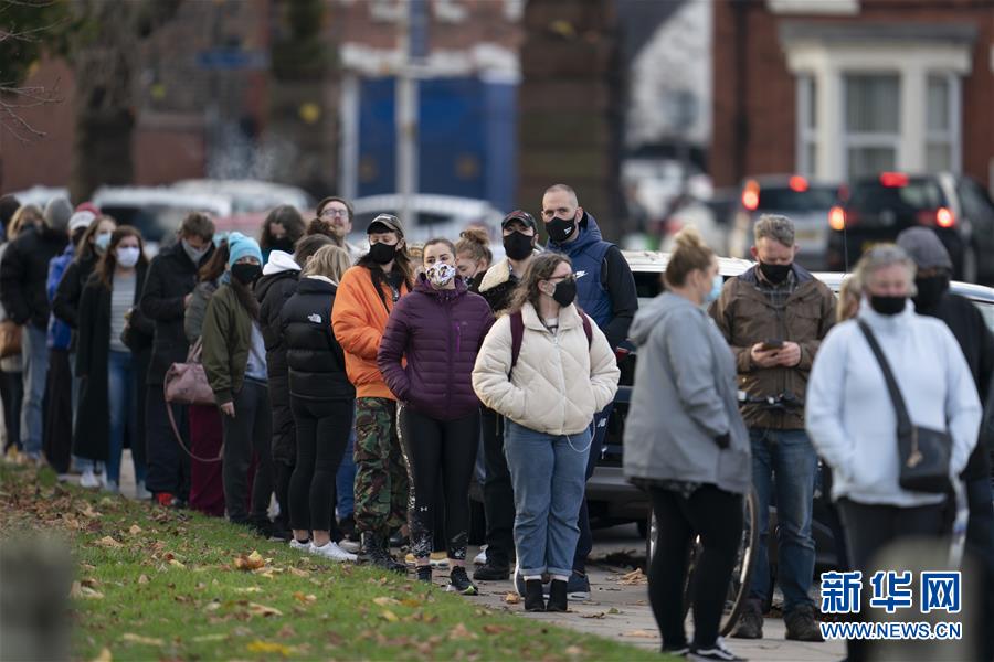 11月6日,人们在英国利物浦的一处新冠病毒检测点排队等待检测。 当日,利物浦开展全城范围新冠病毒检测,当地或在那里工作的人无论是否出现症状,都可以接受检测。这是英国首次在城市开展全城范围的大规模新冠检测。 新华社发(乔恩·休珀摄)