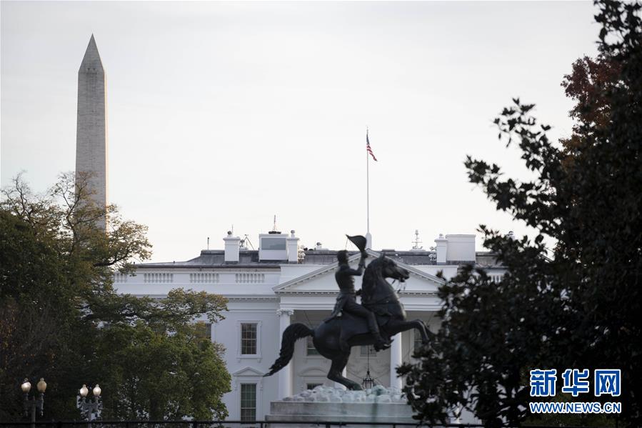 这是11月5日拍摄的美国华盛顿白宫。 2020年美国大选选举日后第三天,计票工作仍在继续。多个“摇摆州”的选票统计接近尾声,两名总统候选人的得票数仍相当接近。 新华社记者 刘杰 摄