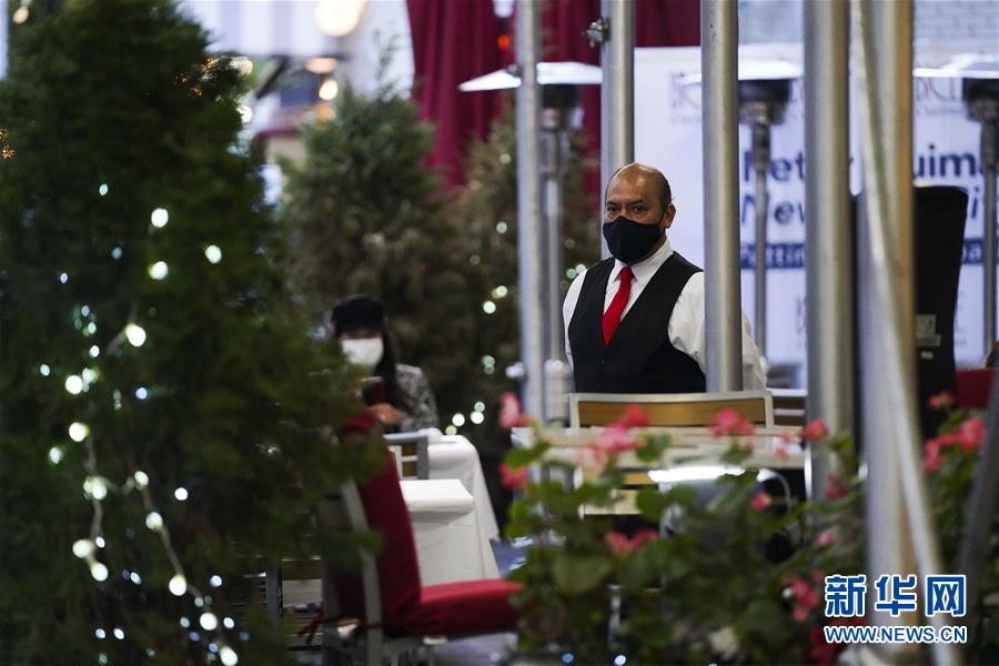 11月6日,在美国纽约,一名侍者在餐厅户外就餐区等待顾客。 美国疾病控制和预防中心6日公布的最新数据显示,全美5日报告新增新冠确诊病例117988例,创全球范围内一国单日新增确诊病例数最高纪录;新增死亡病例1135例。 新华社记者 王迎 摄