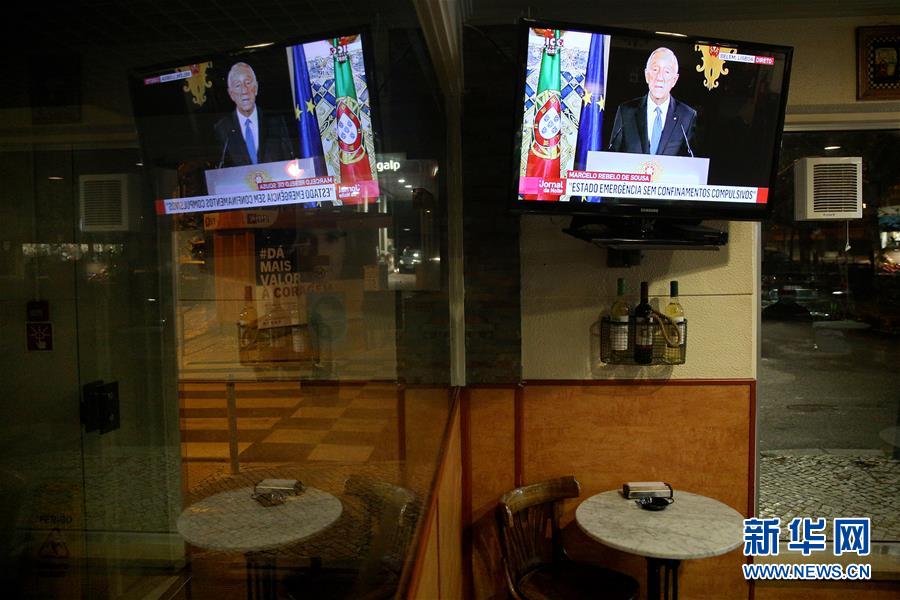 11月6日,葡萄牙卡斯凯什的一处餐厅电视屏幕显示葡萄牙总统德索萨发表电视讲话。 葡萄牙总统德索萨6日正式签署法令,宣布从9日起全国再次进入为期15天的紧急状态,以应对来势汹汹的第二波疫情。 新华社发(佩德罗·菲乌萨摄)