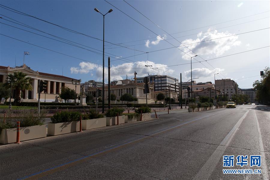 这是11月7日拍摄的希腊雅典市中心一处空旷的街道。 希腊总理米佐塔基斯5日发表电视讲话宣布,自7日早上起,全国将进入为期三周的封锁状态,以遏制急速蔓延的新冠疫情,避免医疗系统遭受“无法承受”的压力。 新华社发(马里奥斯·罗洛斯摄)