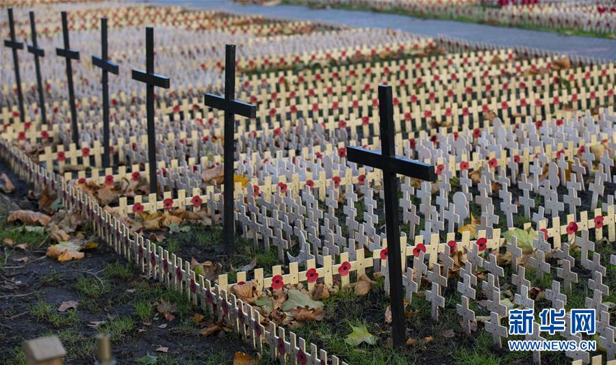这是11月7日在英国伦敦拍摄的威斯敏斯特教堂外摆放的“罂粟花十字架”。 英国伦敦威斯敏斯特教堂外的草坪摆放了众多“罂粟花十字架”,迎接即将到来的“阵亡将士纪念日”,纪念在第一次世界大战中阵亡的将士。11月11日是英联邦国家停战纪念日,也称“阵亡将士纪念日”。 新华社记者 韩岩 摄
