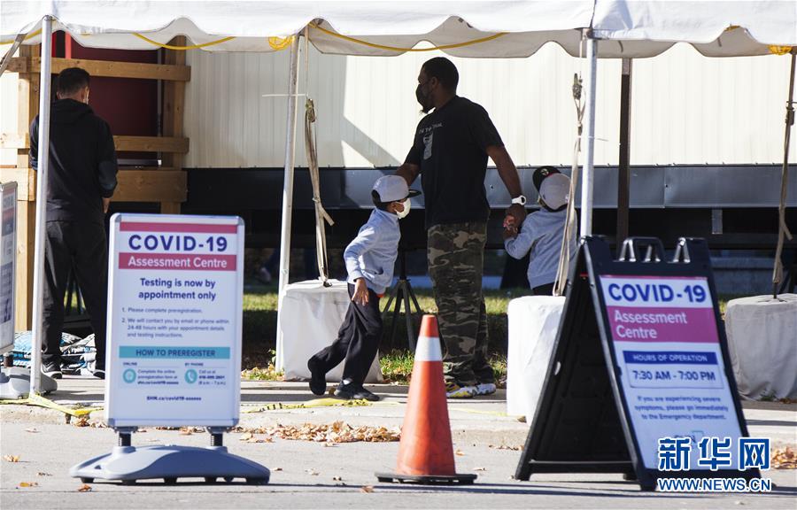 11月8日,在加拿大多伦多,人们在一处新冠病毒检测中心外等候检测。 截至当日下午,加拿大累计新冠确诊病例上升至264045例,累计死亡病例10522例。 新华社发(邹峥摄)