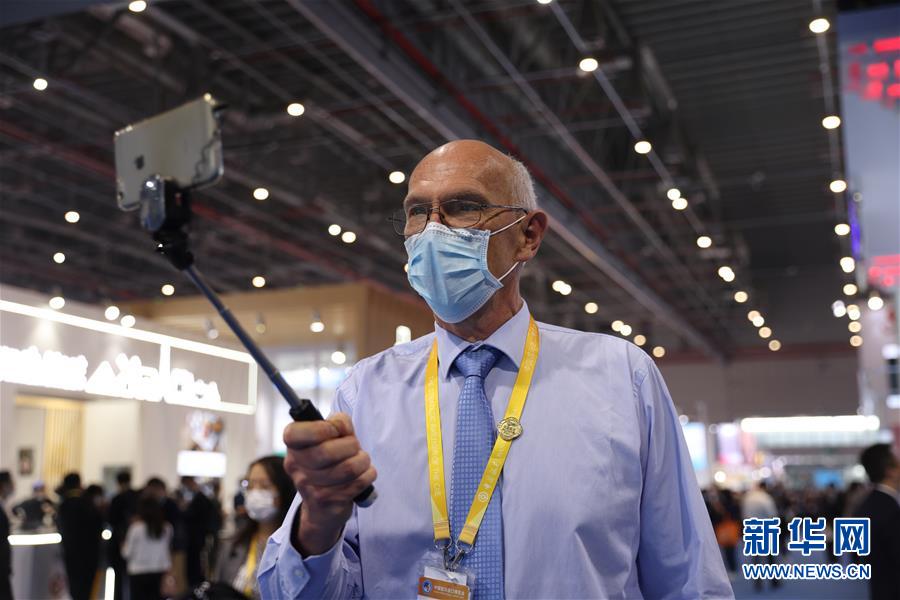 11月7日,罗伊在进博会场馆内自拍留念。新华社记者 卢烨 摄