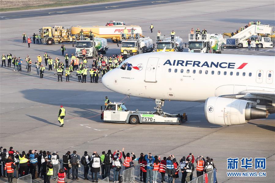 11月8日,人们在德国柏林泰格尔机场欢送最后一班航班——法国航空AF1235航班。 随着德国柏林-勃兰登堡机场的启用,柏林泰格尔机场于8日正式关闭。 新华社记者单宇琦摄